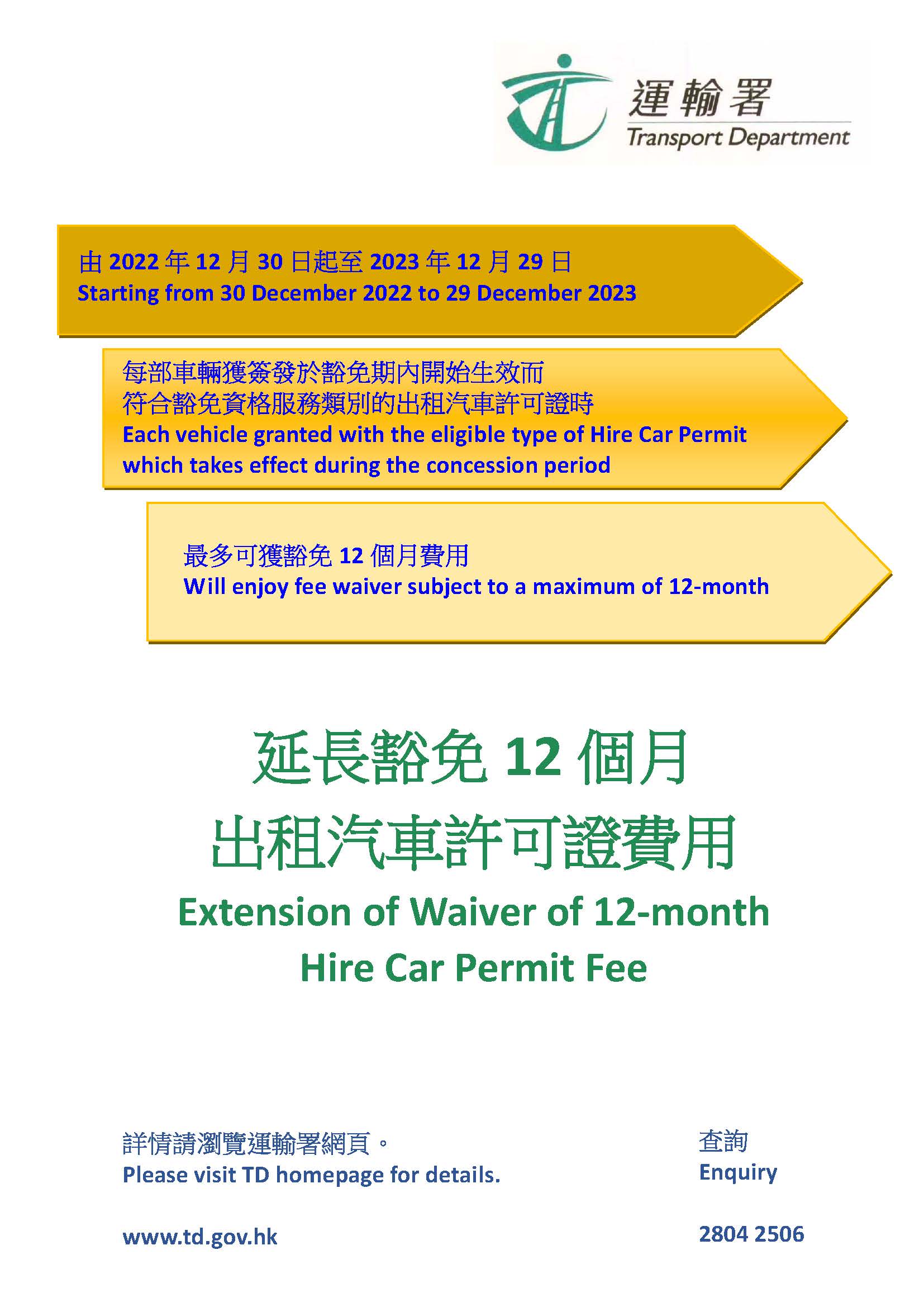 | For enquiries on hire car permits, please contact the Public Vehicles Unit of this Department at 2804 2577. |