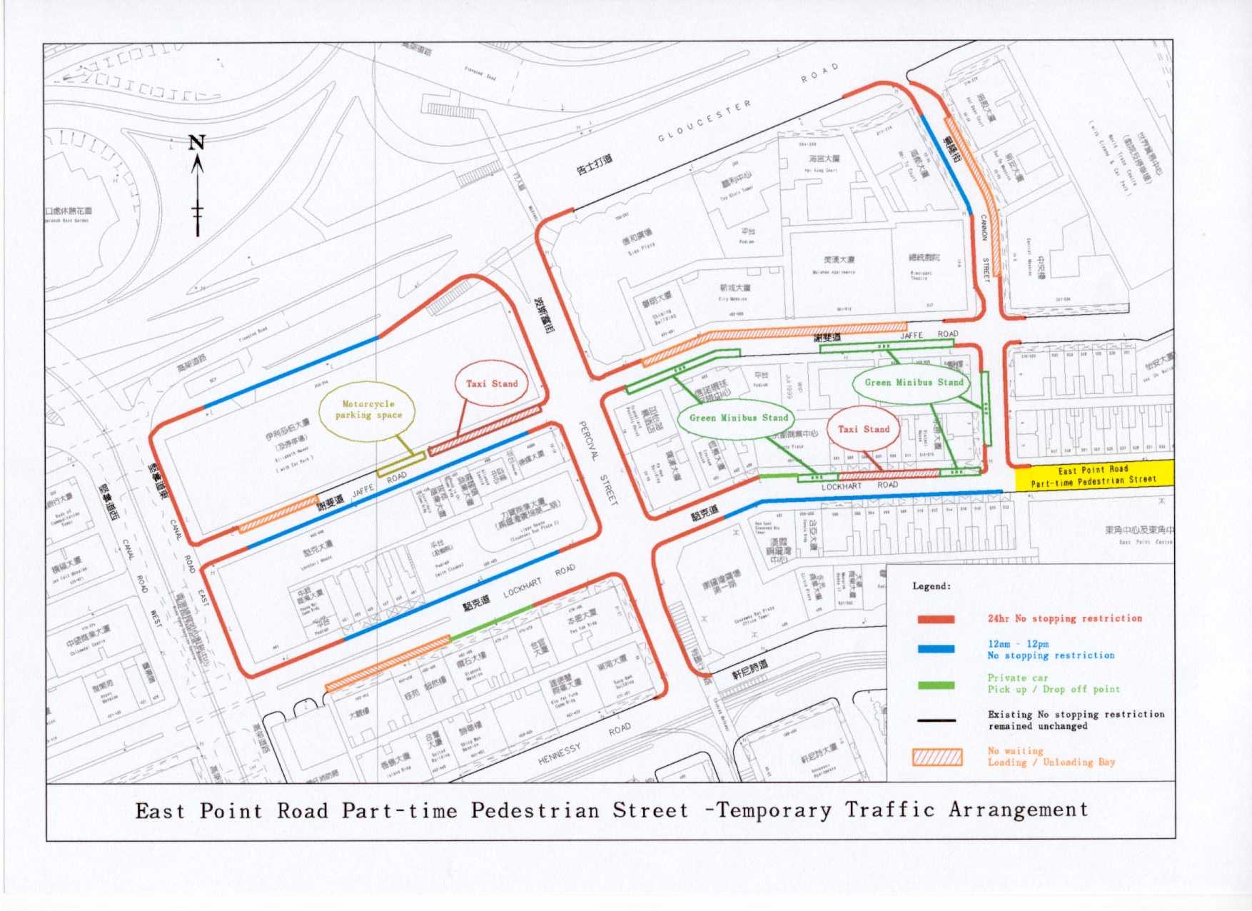 The overall pedestrian environment along a section of Lockhart Road, East Point Road and Great George Street, Causeway Bay will further get improved when a part-time pedestrian street trial scheme takes effect from next Thursday (June 14).