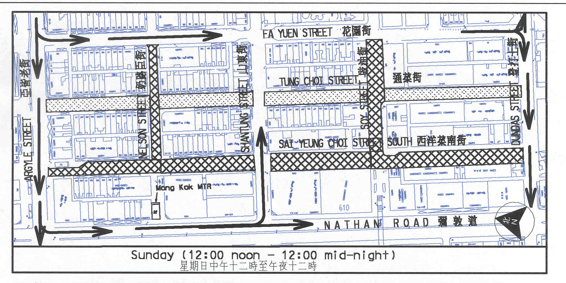 The spokesman also reminded motorists that the pedestrianisation scheme and road closure measures on streets around Sai Yeung Choi Street South on Sundays remained unchanged and they should not enter the following street sections between 12 noon to 12 midnight during which only pedestrians were allowed: