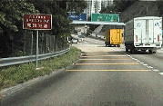 | 3. Transverse yellow bar markings and/or the traffic sign "REDUCE SPEED NOW" have been placed on all exits of expressways and approaches to tunnel toll booths to remind motorists to reduce speed in good time. | |