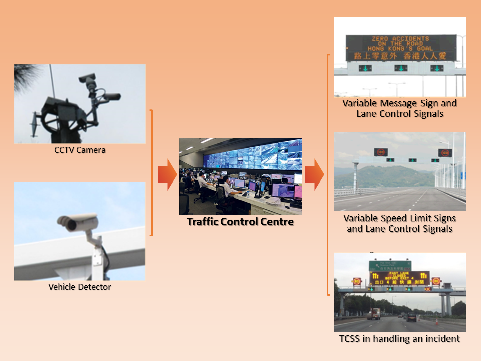 Since early 1980's, all road tunnels and the Tsing Ma Control Area have been equipped with comprehensive Traffic Control and Surveillance facilities including CCTV cameras, automatic incident detectors, lane control signals, variable speed limit signs and variable message signs, etc. for efficient and effective traffic and incident management. Traffic Control and Surveillance Systems have been expanded in recent years to include Shenzhen Western Corridor, Tolo Highway, Fanling Highway (section between Lam Kam Road Interchange and Heung Yuen Wai Highway Interchange), Tsing Sha Control Area, Tuen Mun Road, Hong Kong-Zhuhai-Macao Bridge, Central Wanchai Bypass, Heung Yuen Wai Highway, Tuen Mun-Chek Lap Kok Link, Tseung Kwan O - Lam Tin Tunnel and Cross Bay Link (Tseung Kwan O). New Traffic Control and Surveillance Systems are now being or will be implemented as part of the highway projects including the widening of Tai Po Road (Sha Tin Section), Central Kowloon Route and Trunk Road T2.