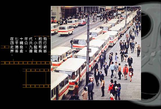 在七十年代,约有四千辆公共小巴行走港岛、九龙和新界各处,接载乘客。 |