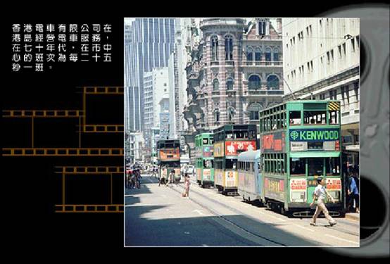 香港电车有限公司在港岛经营电车服务,在七十年代,在市中心的班次为二十五秒一班。 |