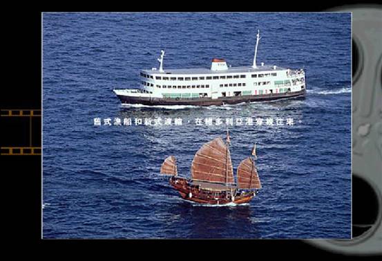 旧式渔船和新式渡轮,在维多利亚港穿梭往来。 |