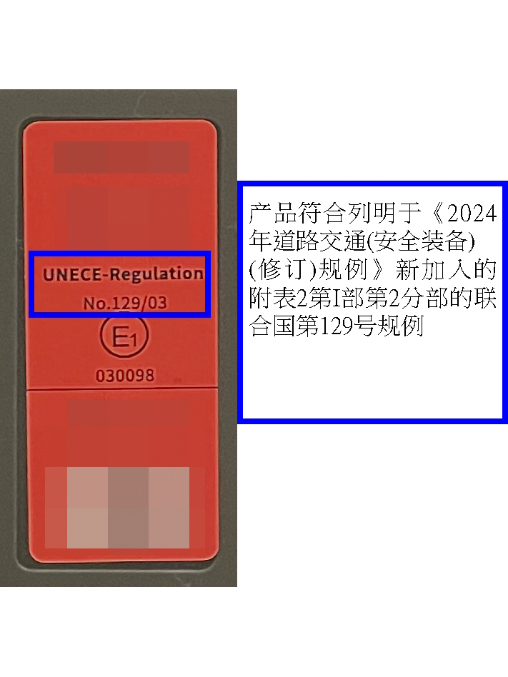 - 欧洲经济委员会于 1973 年 5 月 7 日订立的欧洲经济委员会第 16 号规例 ( 包括所有在 1998 年 8 月 1 日之前作出的修订在内 );欧洲经济委员会于 1981 年 2 月 1 日订立的欧洲经济委员会第 44 号规例 ( 包括所有在 1998 年 8 月 1 日之前就儿童束缚设备作出的修订在内 );或 联合国欧洲经济委员会于 2013 年 8 月 7 日订 立的联合国第 129 号规例 ( 包括所有在 2025 年 11 月 1 日之前就儿童束缚设备作出的修订在内 );