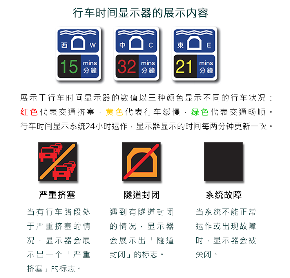 行车时间显示系统所显示的实时交通资讯已上载至运输署网页上的交通资讯。