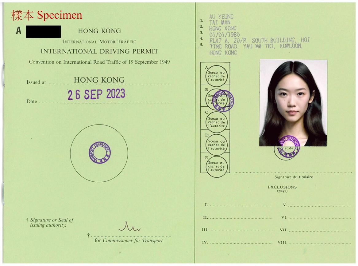運輸署今日(九月二十六日)推出網上申領國際駕駛許可證服務,以便利公眾。圖示經親身到牌照事務處、郵寄或投遞箱遞交申請而獲發的國際駕駛許可證樣式。