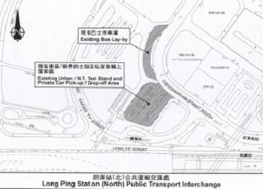 現公布為配合西鐵朗屏站(北)日後物業發展道路工程,當局將由2013年1月28日,永久封閉朗屏站(北)公共運輸交匯處部分公共交通設施。有關設施的實際位置已在附表內的繪圖上以影線示明。