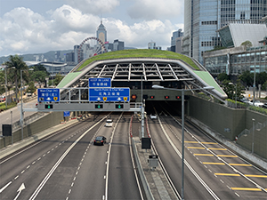 中環及灣仔繞道隧道連接中環干諾道中高架道路、灣仔北及北角東區走廊,全長 3.7 公里,實施雙程三線行車(銅鑼灣避風塘至灣仔北一段西行為四線)。隧道於2019年通車,並不收取費用。 |