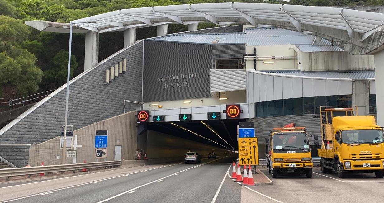 南灣隧道位於青沙管制區,隧道全長1.2公里,實施雙程三線行車。隧道連接長青公路及昂船洲大橋。隧道於2009年通車,並不收取費用。 |