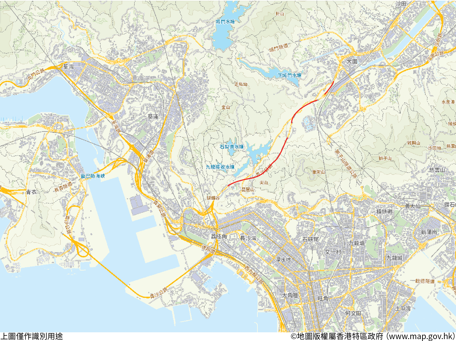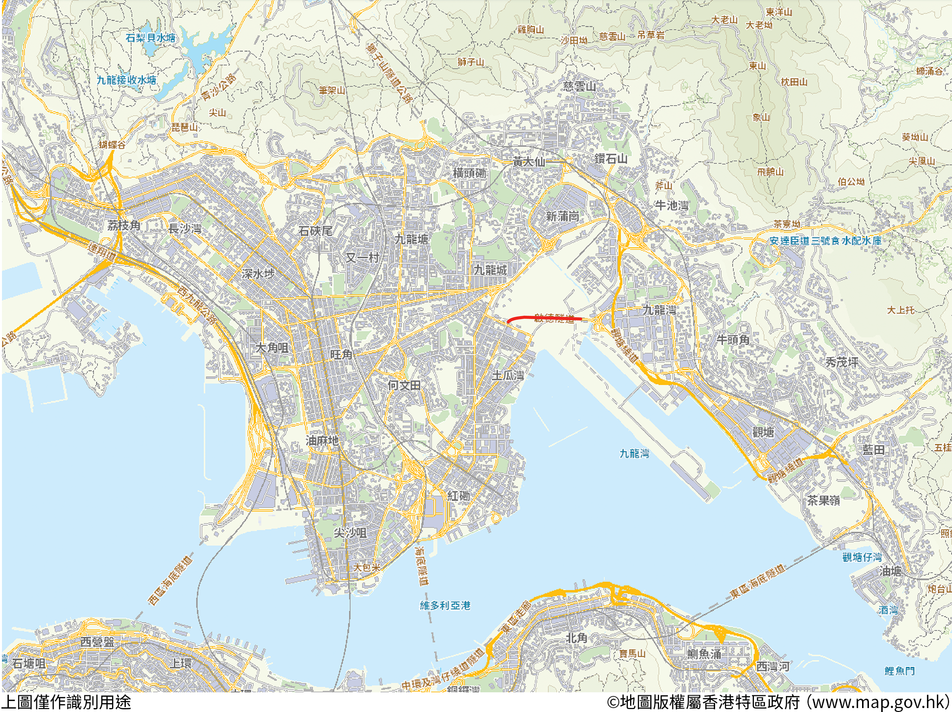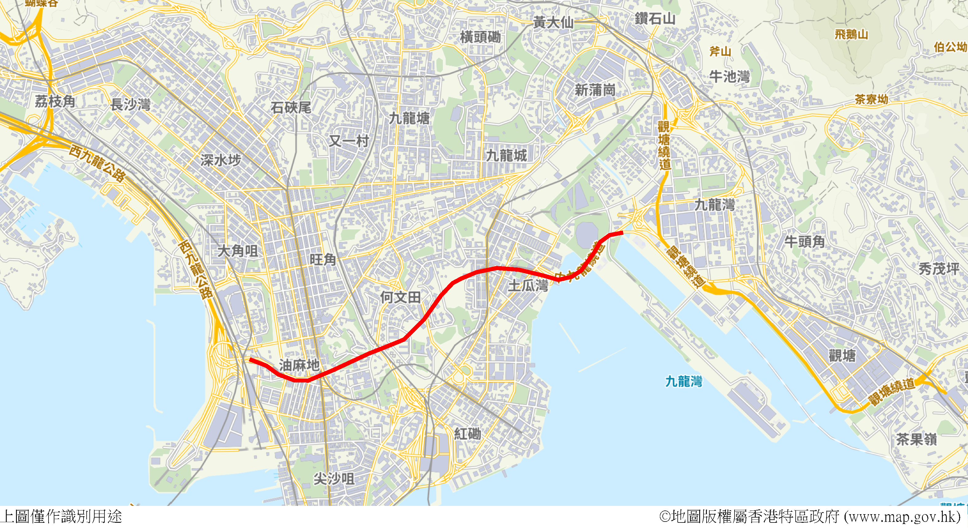 中九龍繞道(油麻地段)全長4.7公里,當中包括一段長約3.9公里隧道,採用雙程三線分隔車道設計,連接西九龍的油麻地交匯處與東九龍的啟德發展區和九龍灣。 |