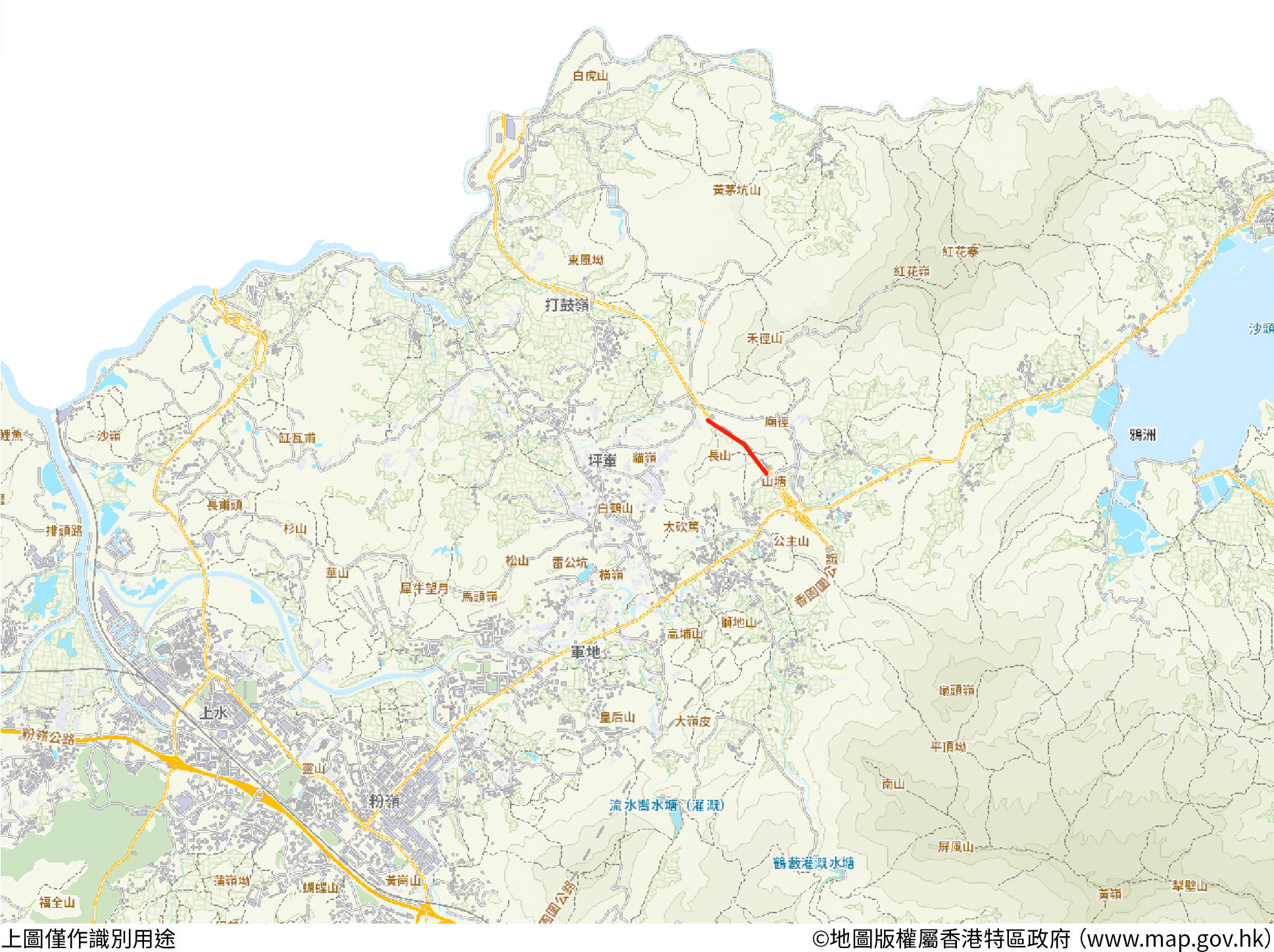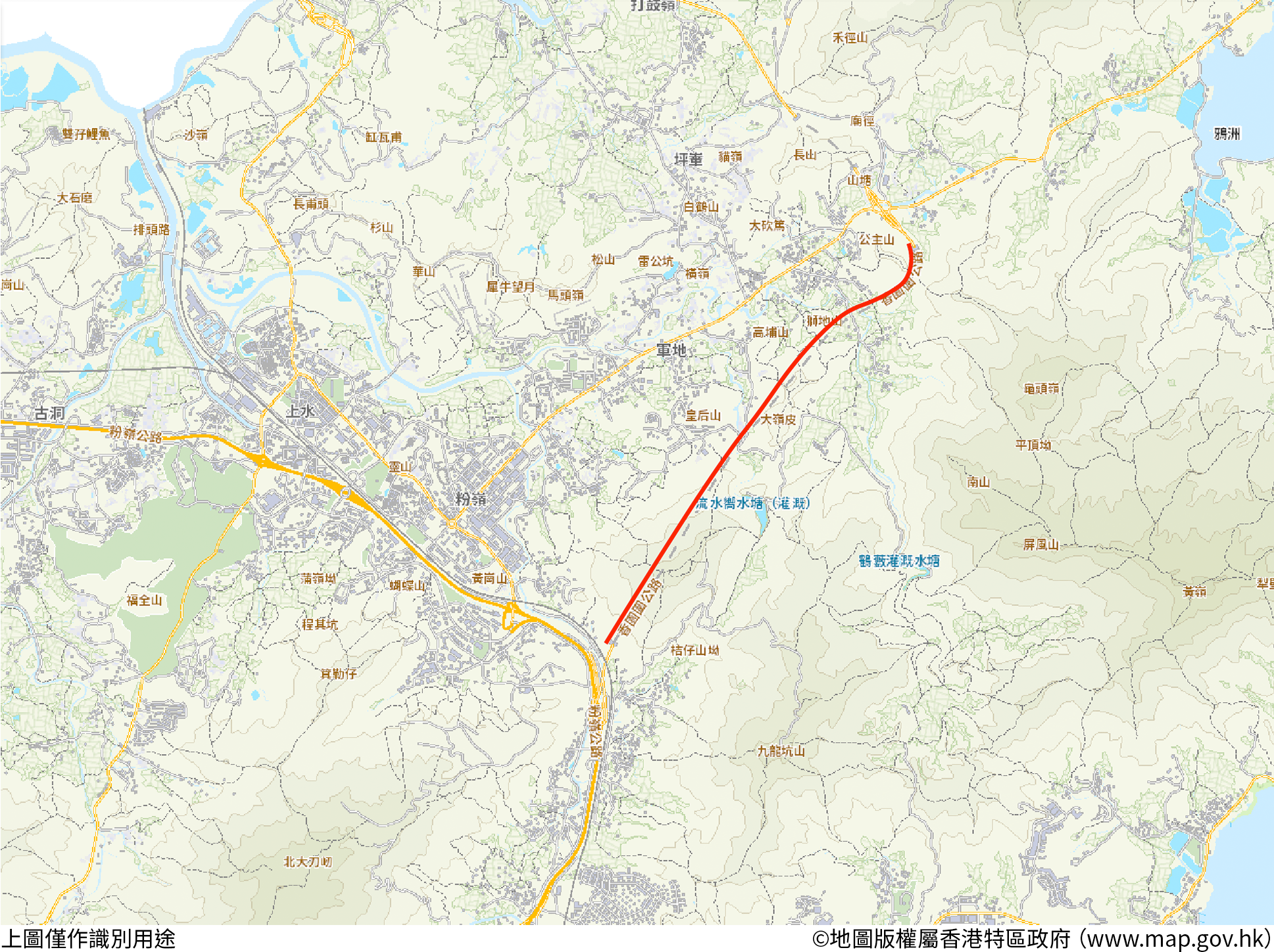 龍山隧道連接粉嶺及沙頭角公路交匯處,全長4.8公里,實施雙程雙線行車。隧道於2019年通車,並不收取費用。 |