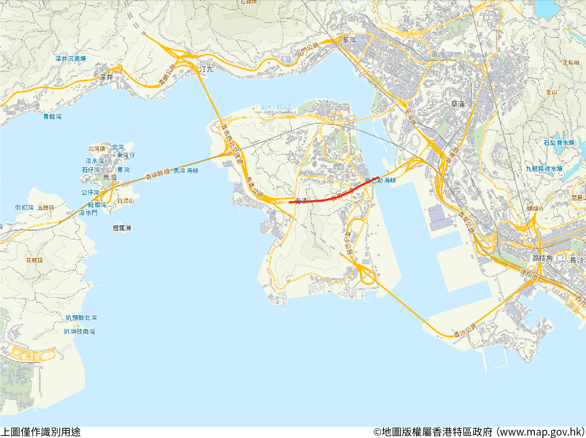 屯門-赤鱲角隧道連接屯門區及離島區大嶼山,全長5公里, 實施雙程雙線行車。隧道於2020年通車,並不收取費用。 |